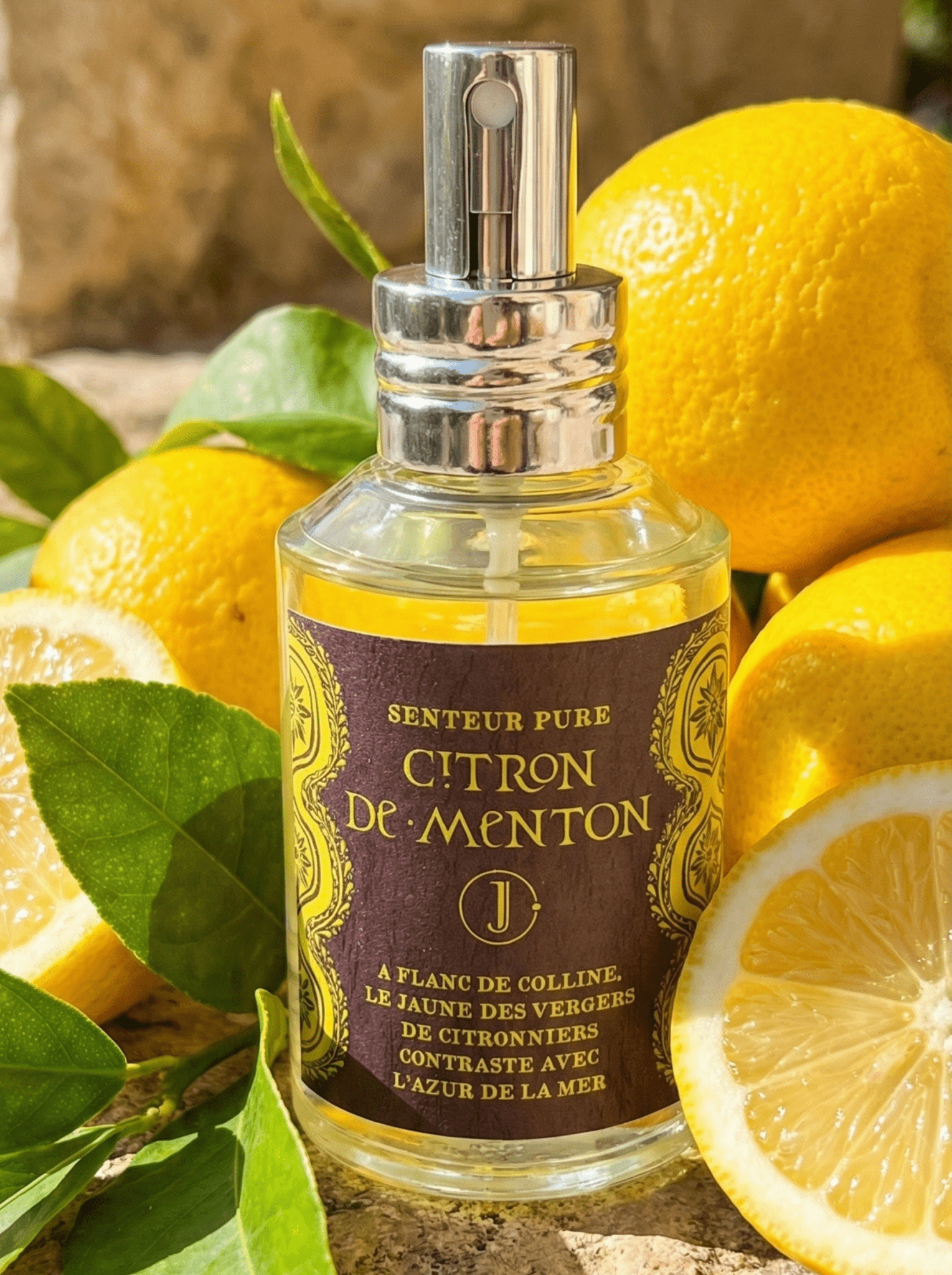 Notre citron de Menton est né en 2020 ; il est réputé pour son caractère tonique et sucré, qui évoquera la Riviera franco-italienne, le soleil azuréen, les plages. Une merveille à vaporiser sur les draps de plage, les peignoirs de bain et les draps, le soir avant de se coucher.